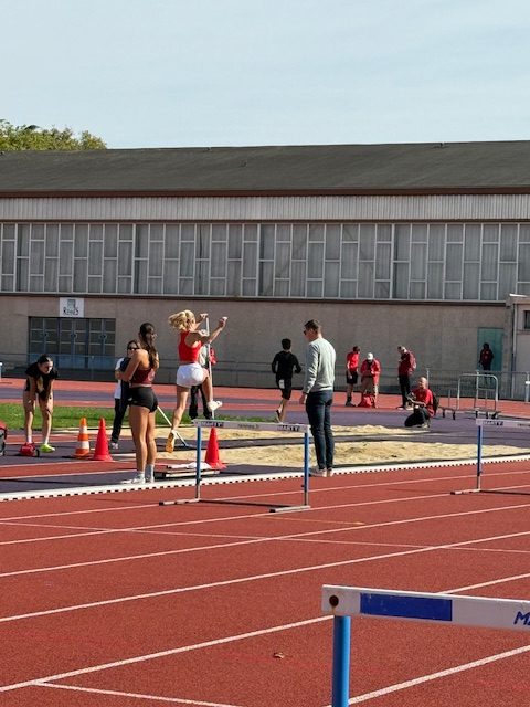 En lancer, Maëlann QUERARD fait sa rentrée au javelot de 600 grammes en lançant à 32,21 m. Marie LELAIDIER progresse au poids avec 8,04 m.