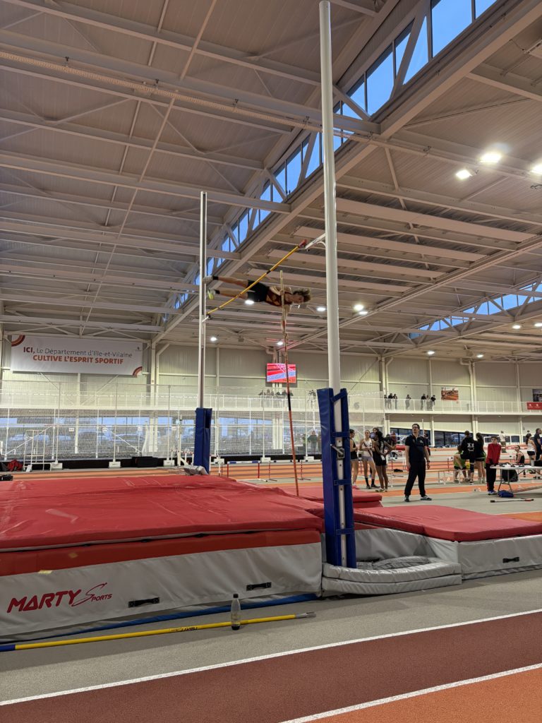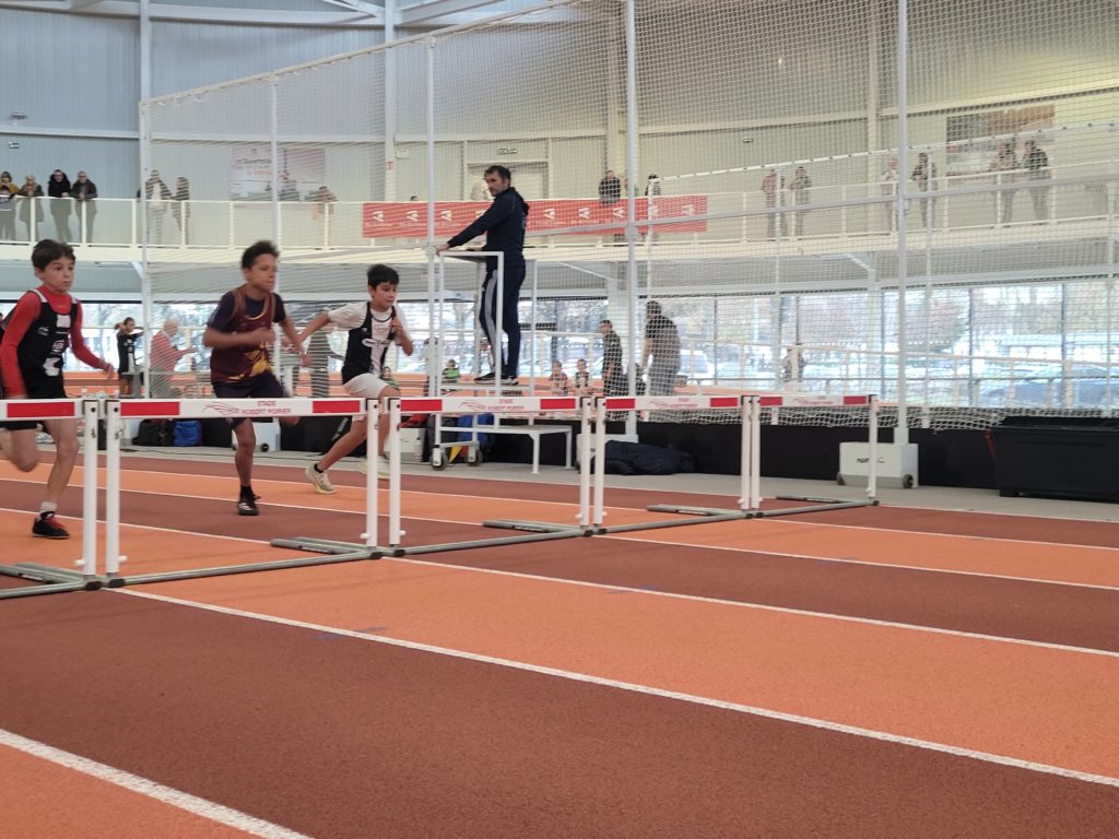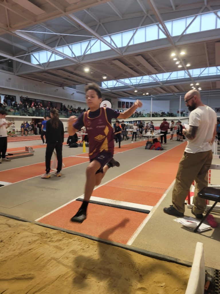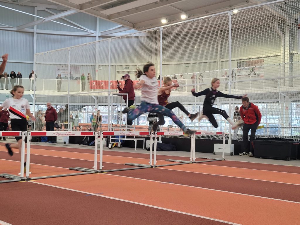 Chez les benjamines (U14), Alice ROY a découvert la salle en retombant à 2,71 m en longueur et termine son 50 m haies en 12″52 et son 1000 m en 4’26″48. Chez les garçons, Diago RUELLAN-FERNANDEZ a enchaîné les bonnes performances en prenant la 1ère place au 50 m haies avec 8″35 et finit 2ème au 50 m en 7″27. Il retombe à 4,40 m en longueur et prend aussi la 2ème place.