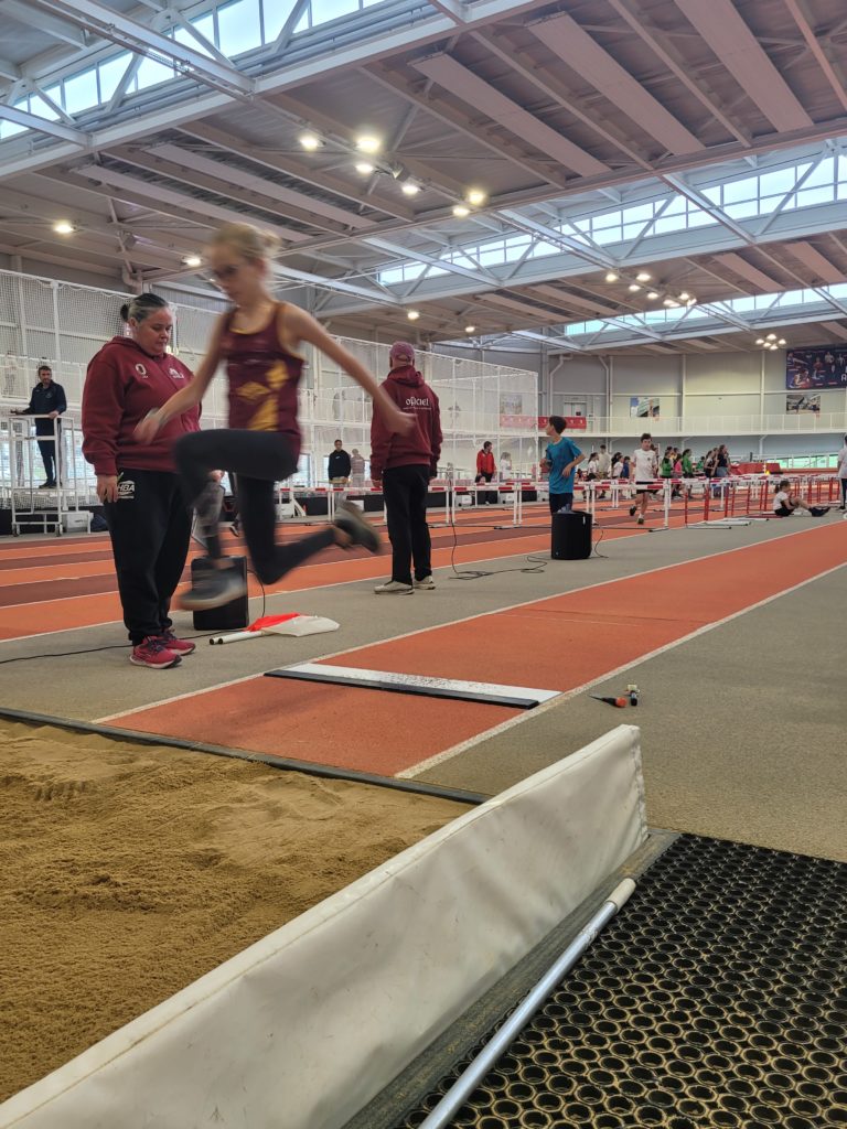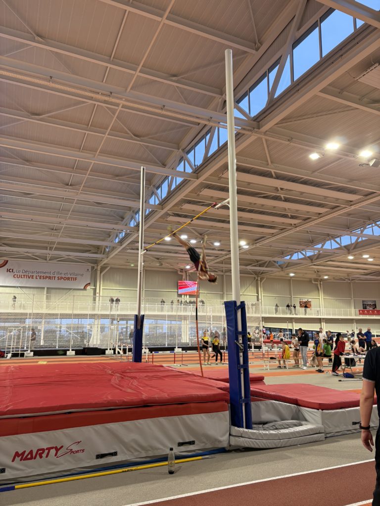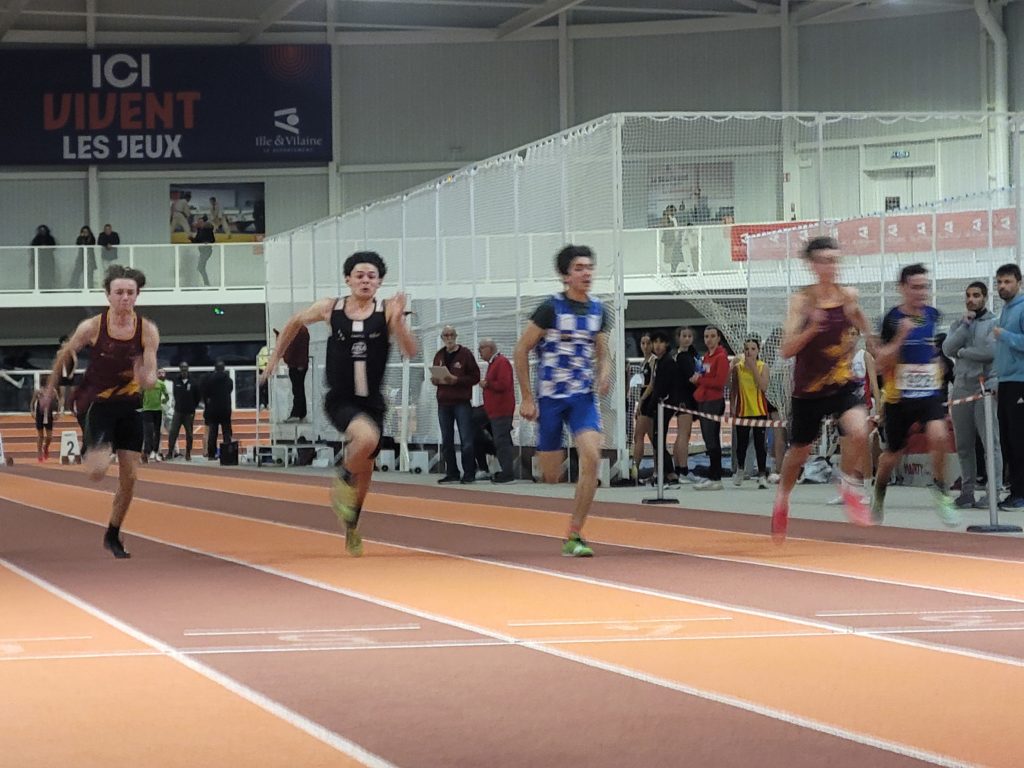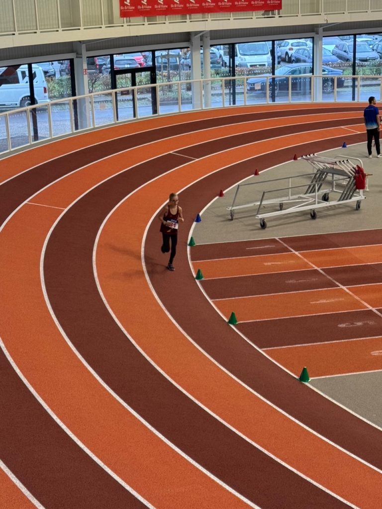 Chez les benjamines (U14), Alice ROY a découvert la salle en retombant à 2,71 m en longueur et termine son 50 m haies en 12″52 et son 1000 m en 4’26″48. Chez les garçons, Diago RUELLAN-FERNANDEZ a enchaîné les bonnes performances en prenant la 1ère place au 50 m haies avec 8″35 et finit 2ème au 50 m en 7″27. Il retombe à 4,40 m en longueur et prend aussi la 2ème place.
