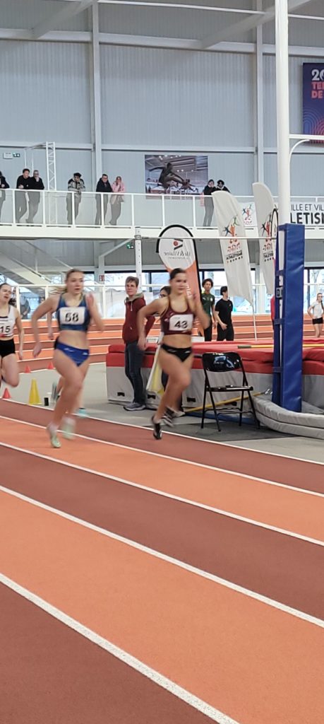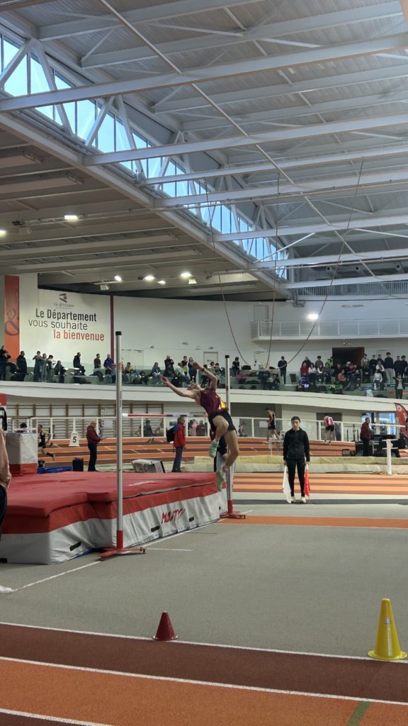 Au triple-saut, Emile AUBERT confirme les progrès faits ces derniers temps en retombant à 11,88 m, il prend la 4ème place du concours junior. Il passe aussi sous la barre des 10″ avec 9″83 au 60 m haies. Thomas GAUTIER après son titre au poids prend la 4ème place en hauteur avec 1,60 m. Nathan ROULAND quant à lui réussit un joli saut à 1,70 m.