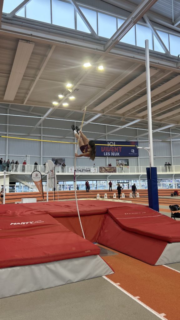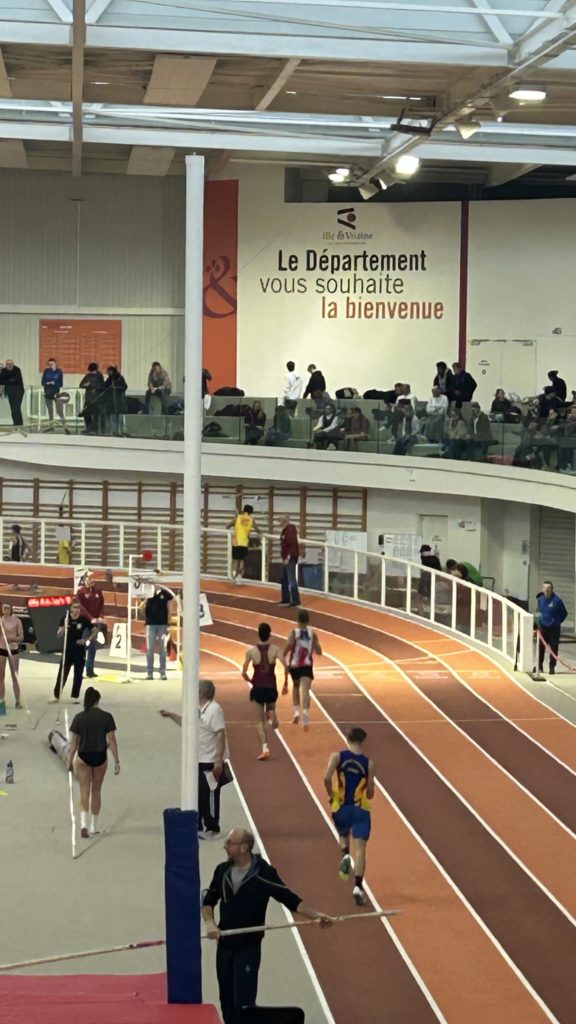 A la perche, Maëlann QUERARD franchit 220 comme Flora LE DUIGOU. Flora réalise dans le même temps 10″21 au 60 m haies. Au 400 m, Gaëtan HAMONIAUX termine sous la minute avec 58″74. Au 60 m, Johan ROUXEL réalise un 7″49 prometteur en cadet et Amandine 8″67. Maël COFFRE reprend la compétition avec 8″23.