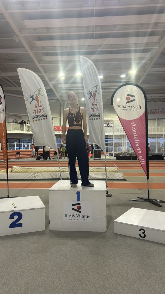 Dimanche 11 janvier, la salle Robert Poirier de Rennes reçoit les championnats départementaux cadet et plus. Les athlètes dinardais ont relevé le défi avec 4 podiums dont 3 titres de champion départemental. Thomas GAUTIER gagne son premier titre au poids (5kg) cadet avec un jet à 10,94 m. Marie LELEIDIER remporte le 400 m junior en 59″80 avec maîtrise. Jade MALZARD en effaçant une barre à 1,58 m finit 1ère junior en hauteur. Amandine COUTURIER continue sa progression en franchissant facilement 3 m à la perche junior, elle termine 3ème du concours.