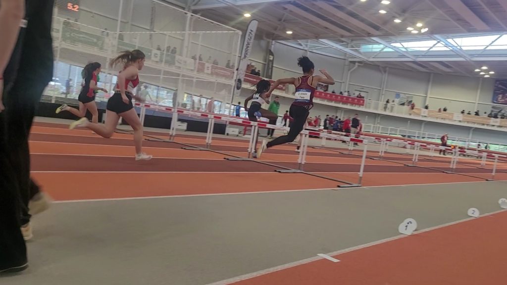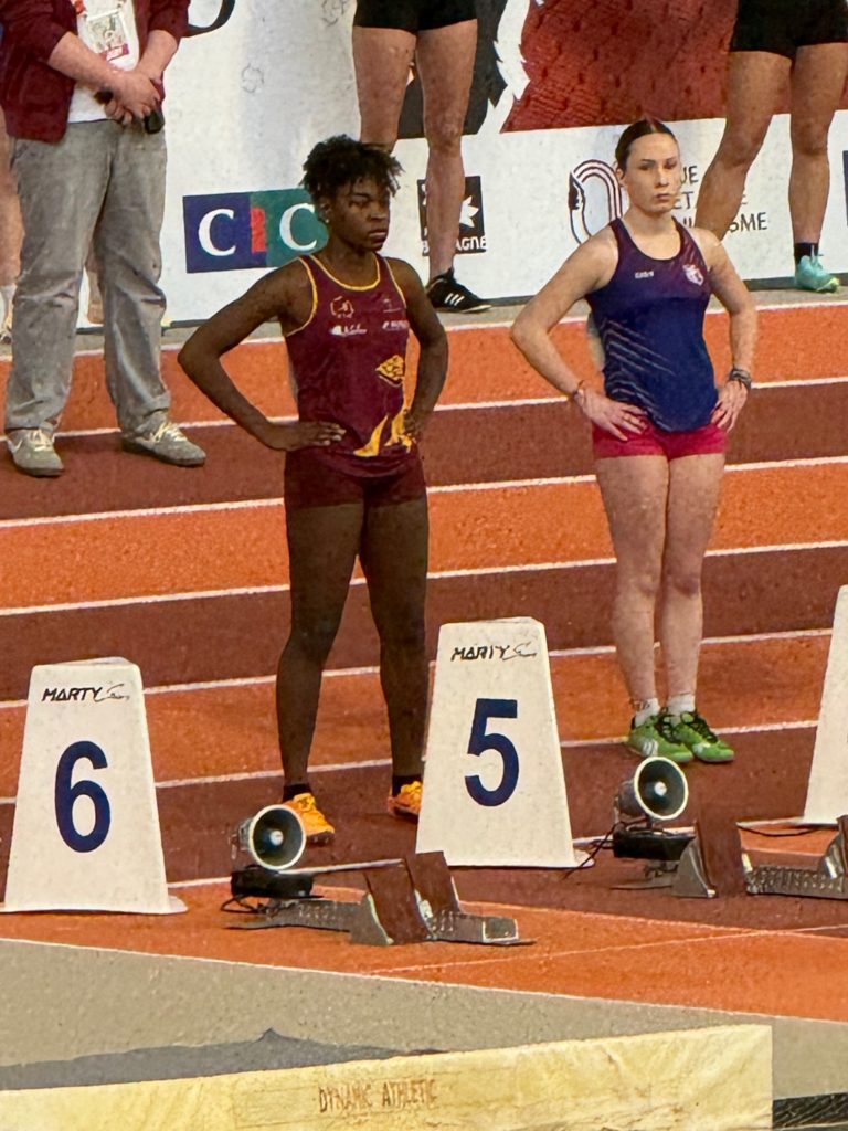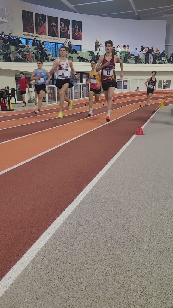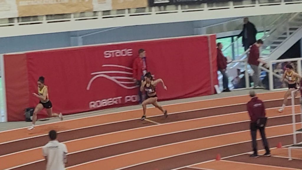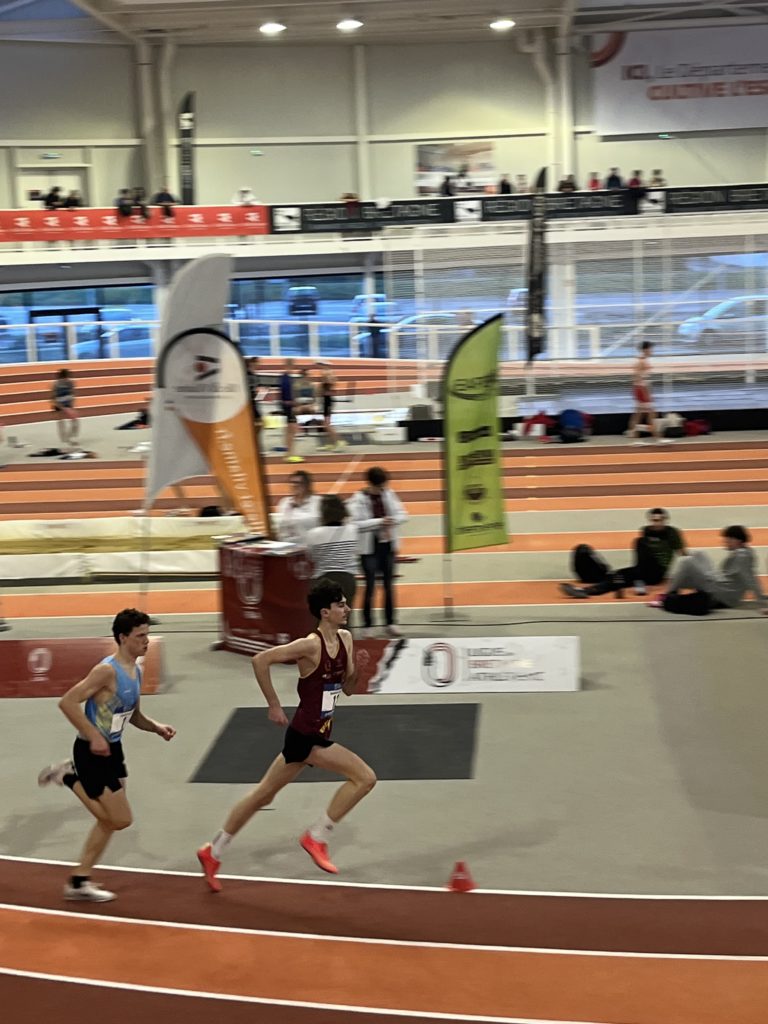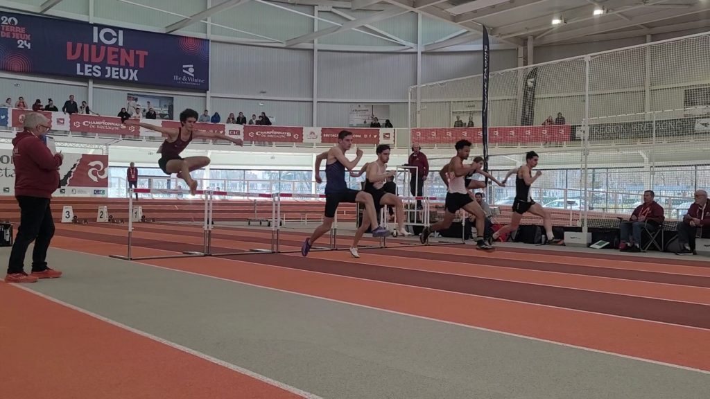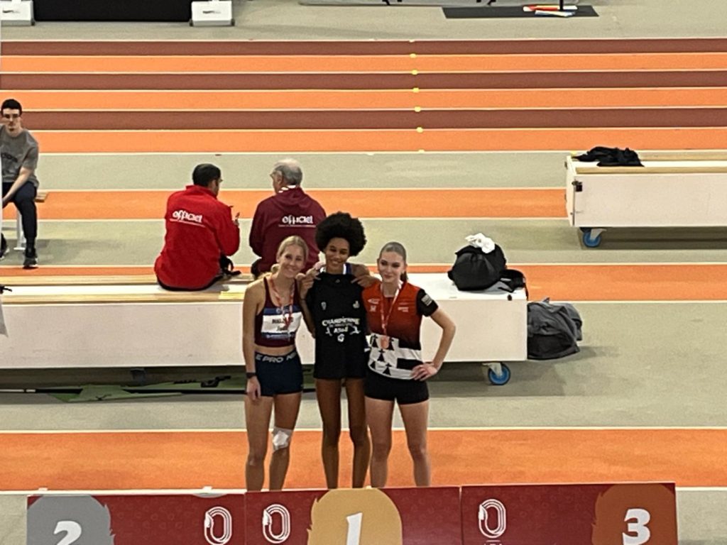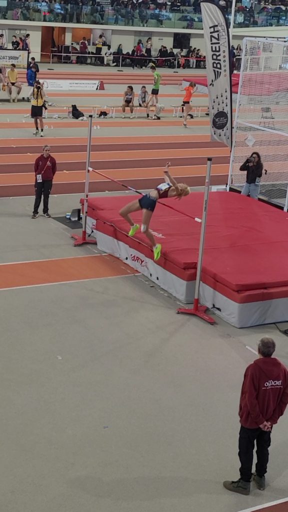 Lors des championnats de Bretagne en salle à Rennes, nos 7 athlètes dinardais ont rapporté ce week-end 4 médailles d’argent : Caroline Bourras, au lancer du poids senior, fait 11.07 m; 3 juniors filles complètent cette belle performance : Jade Malzard à la hauteur s’envole à 1.57m, Amandine Couturier bat son record personnel à la perche en sautant 3.12m et Marie Lelaidier sur 400m réalise 59.63s, c’est un possible ticket pour les championnats de France indoor en février pour ces 3 jeunes filles. En cadette, Flora Le Duigou saute 2.02m à la perche et court le 60m haies 10.27s. Emile Aubert bat son record personnel d’un centimètre au triple saut en franchissant 12.02m, il termine 4ème d’un concours de niveau national et réalise 9.93s en série de son 60m haies. Gaëtan Hamoniaux termine son 800 m cadet avec un nouveau record personnel en 2 12″55.