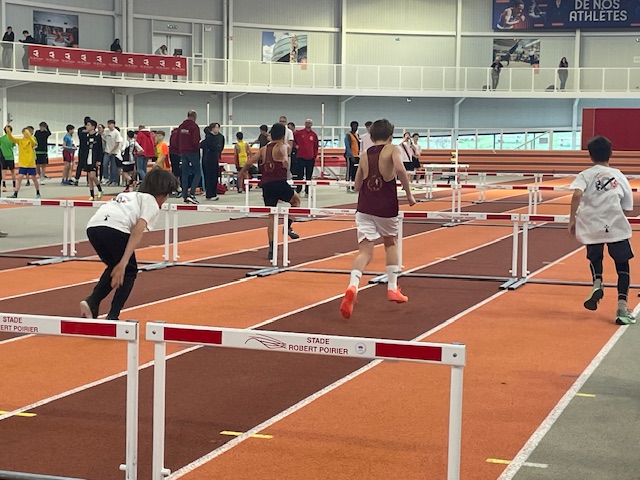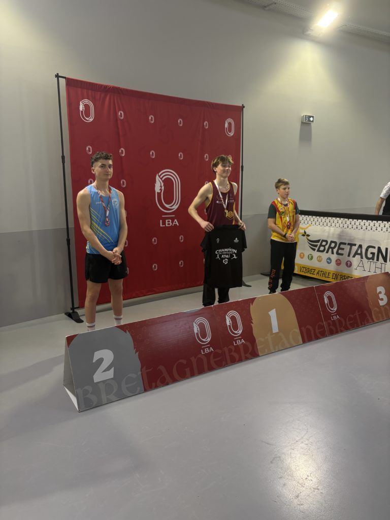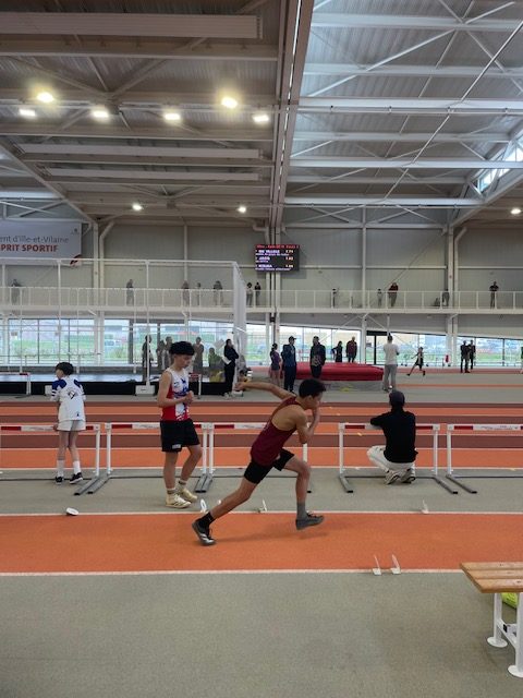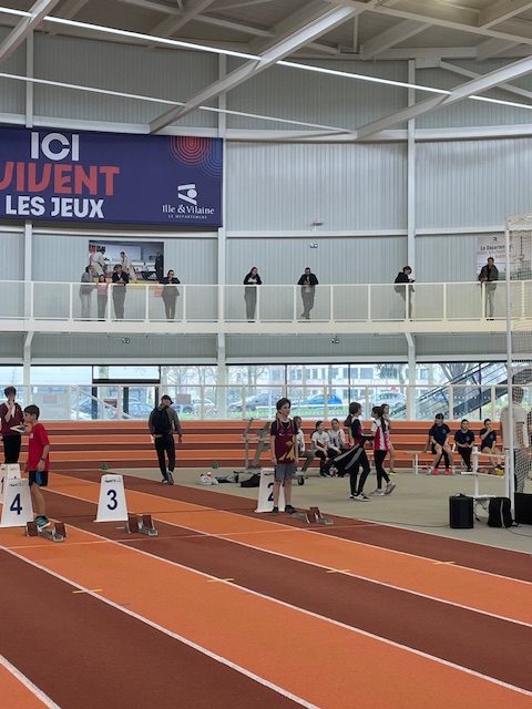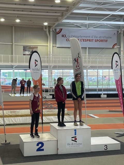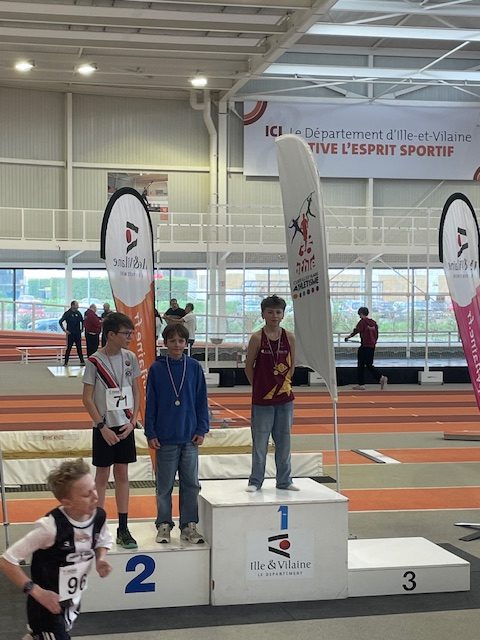 Ce même samedi, les benjamins représentaient l’ACE aux championnats départementaux à Rennes. 3 médailles pour l’ACE : un titre pour Mylan REMOND avec un saut à 2 m à la perche, une place de 2ème pour Margot RIPA qui franchit 1,30 m à la perche devant Alice ROY (3ème) 1,10 m toujours à la perche. Mylan réalise aussi 7″56 au 50 m et 9″01 au 50 m haies. Margot termine son 50 m haies en 11″01 juste derrière Alice ROY qui fait 10″92, Alice améliore son temps sur 1000 m en 4’10″74. Marceau LAHAYE reprend la compétition avec un triple-saut à 7,91 m et un 50 m fini en 8″09. Zoé TESSIER, pour sa première compétition, retombe à 3,01 m en longueur et fait 8″55 au 50 m. Enfin Diago RUELLAN FERNANDEZ qui traverse une période de croissance est en-dessous de ses performances habituelles. Il réalise tout de même 4,02 m en longueur après avoir couru son 50 m en 7″23 et son 50 m haies en 8″80.