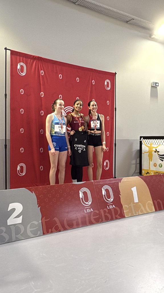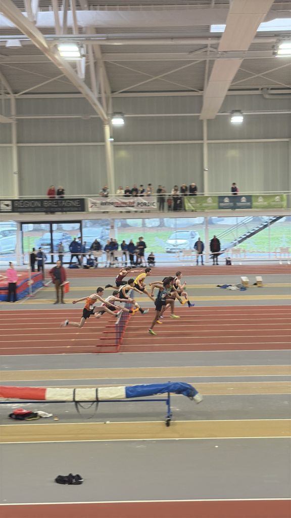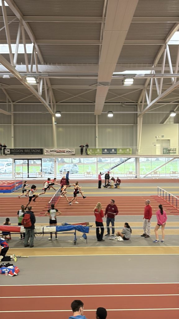 Samedi 7 mars, les meilleurs minimes bretons étaient rassemblés à Saint-Brieuc pour les championnats régionaux. Elisa DELAPORTE a montré son savoir-faire sur les haies en remportant le 50 m haies en 7″68. Ce temps constitue le 7ème meilleurs temps français dans sa catégorie. À la perche, Loïc QUERARD a dominé le concours en franchissant une barre placée à 3,80 m, il échoue à 4m. Il garde la 6ème performance française. Tous les 2 terminent champion de Bretagne et représenteront la région dimanche prochain lors des interligues minimes. Sur cette même compétition, Loic réalise 7″67 sur le 50 m haies et Servane ODOARD termine son 50 m en 7″14.